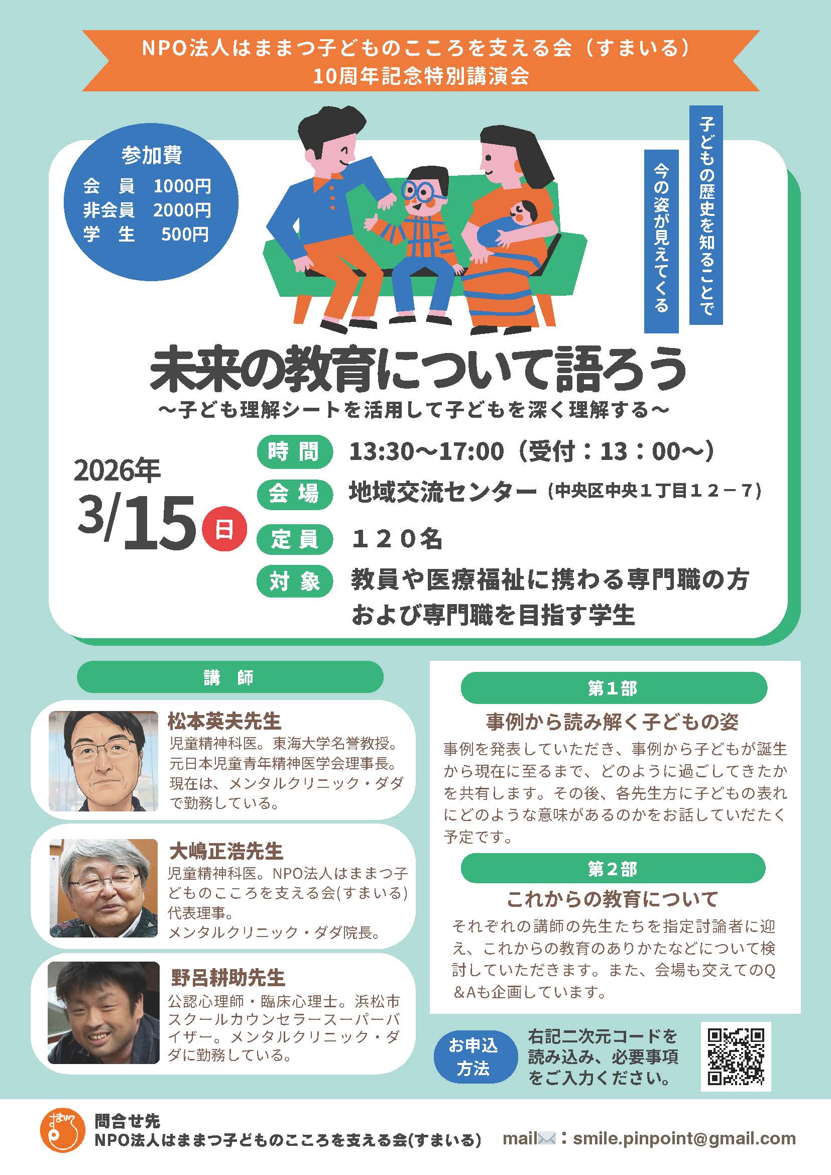 弊所所長和久田学が理事を務める「NPO法人はままつ子どものこころを支える会(すまいる)」が、10周年記念特別講演会を開催します。